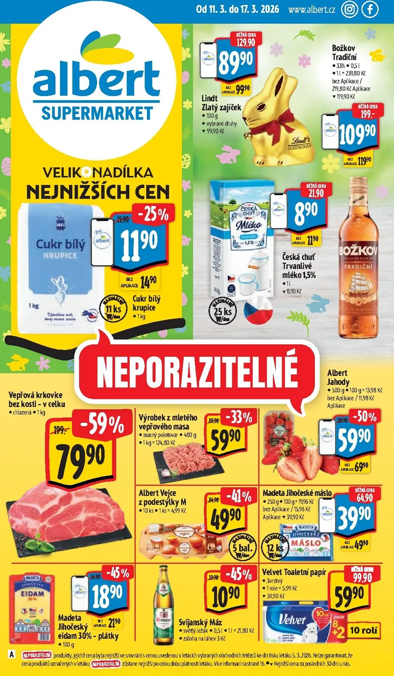 Právě se díváte na aktuální leták z obchodu Albert platný od 11.03.2026 do 17.03.2026. V letáku naleznete na 47 stránkách informace o aktuálních slevách. Navštěvujte pravidelně 111Letaky a získejte vždy aktuální informace o všech letácích z nabídek českých obchodů.