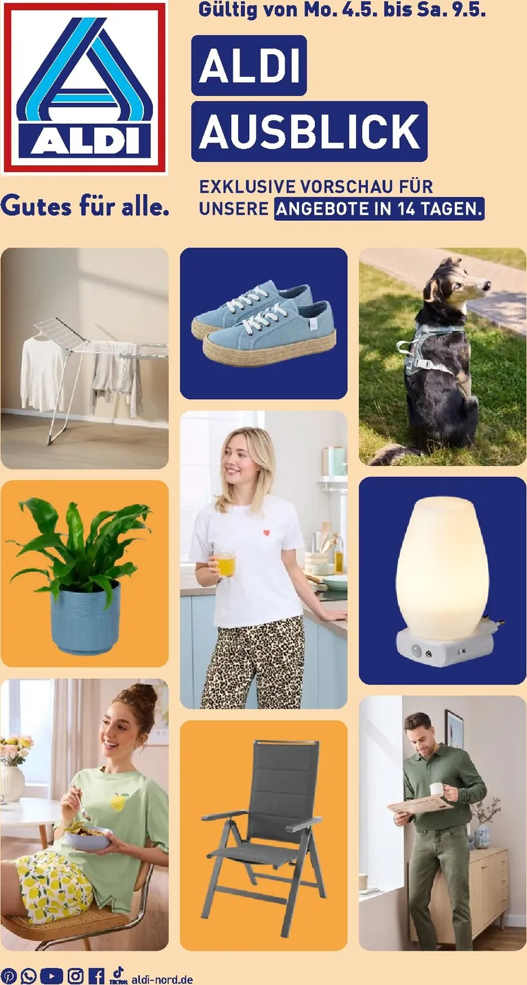 Právě se díváte na aktuální leták z obchodu Aldi Nord Německo platný od 04.05.2026 do 09.05.2026. V letáku naleznete na 14 stránkách informace o aktuálních slevách. Navštěvujte pravidelně 111Letaky a získejte vždy aktuální informace o všech letácích z nabídek českých obchodů.