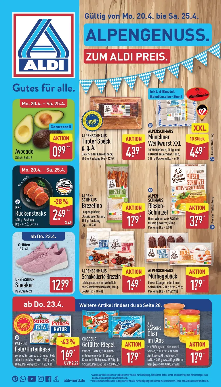 Právě se díváte na aktuální leták z obchodu Aldi Nord Německo platný od 20.04.2026 do 25.04.2026. V letáku naleznete na 39 stránkách informace o aktuálních slevách. Navštěvujte pravidelně 111Letaky a získejte vždy aktuální informace o všech letácích z nabídek českých obchodů.