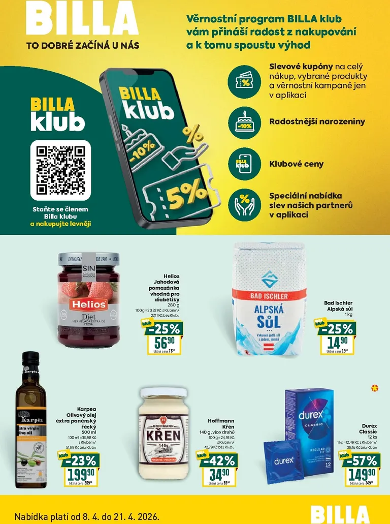 Právě se díváte na aktuální leták z obchodu Billa platný od 08.04.2026 do 21.04.2026. V letáku naleznete na 2 stránkách informace o aktuálních slevách. Navštěvujte pravidelně 111Letaky a získejte vždy aktuální informace o všech letácích z nabídek českých obchodů.