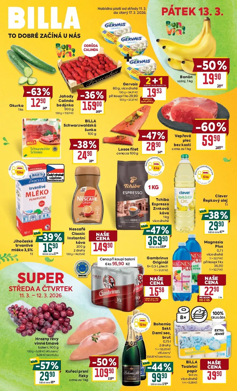 Právě se díváte na aktuální leták z obchodu Billa platný od 11.03.2026 do 17.03.2026. V letáku naleznete na 32 stránkách informace o aktuálních slevách. Navštěvujte pravidelně 111Letaky a získejte vždy aktuální informace o všech letácích z nabídek českých obchodů.