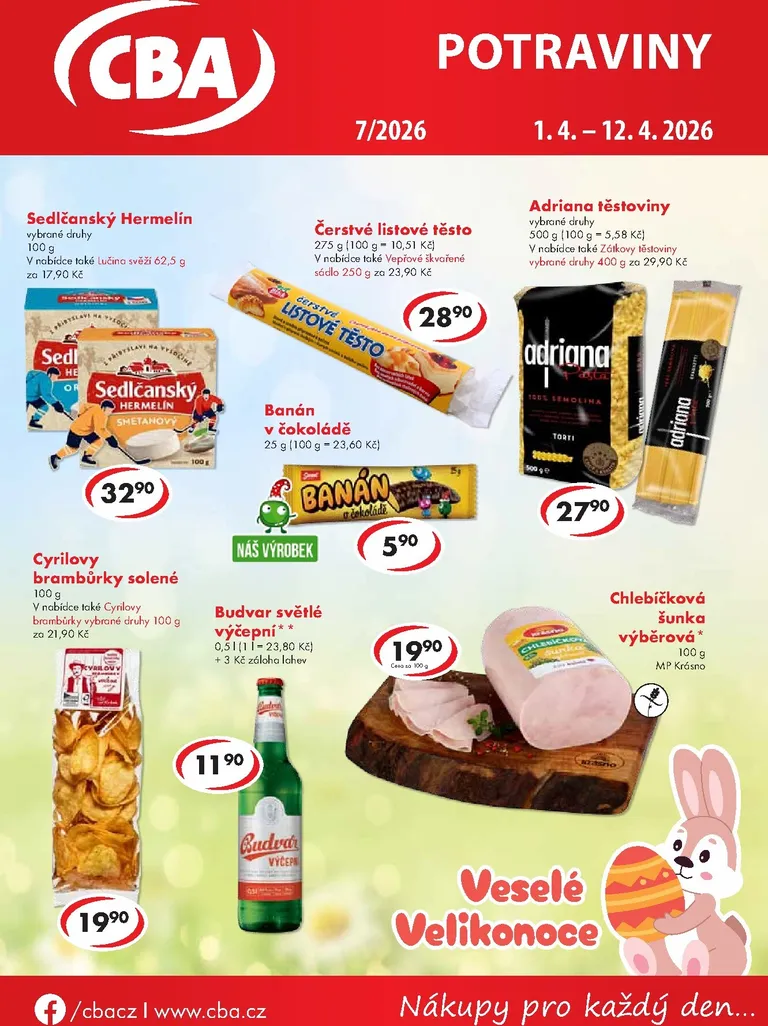 Právě se díváte na aktuální leták z obchodu CBA platný od 01.04.2026 do 12.04.2026. V letáku naleznete na 4 stránkách informace o aktuálních slevách. Navštěvujte pravidelně 111Letaky a získejte vždy aktuální informace o všech letácích z nabídek českých obchodů.