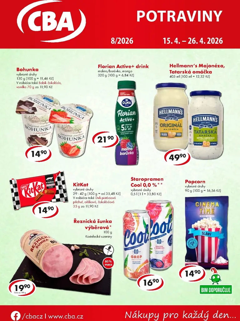 Právě se díváte na aktuální leták z obchodu CBA platný od 15.04.2026 do 26.04.2026. V letáku naleznete na 4 stránkách informace o aktuálních slevách. Navštěvujte pravidelně 111Letaky a získejte vždy aktuální informace o všech letácích z nabídek českých obchodů.