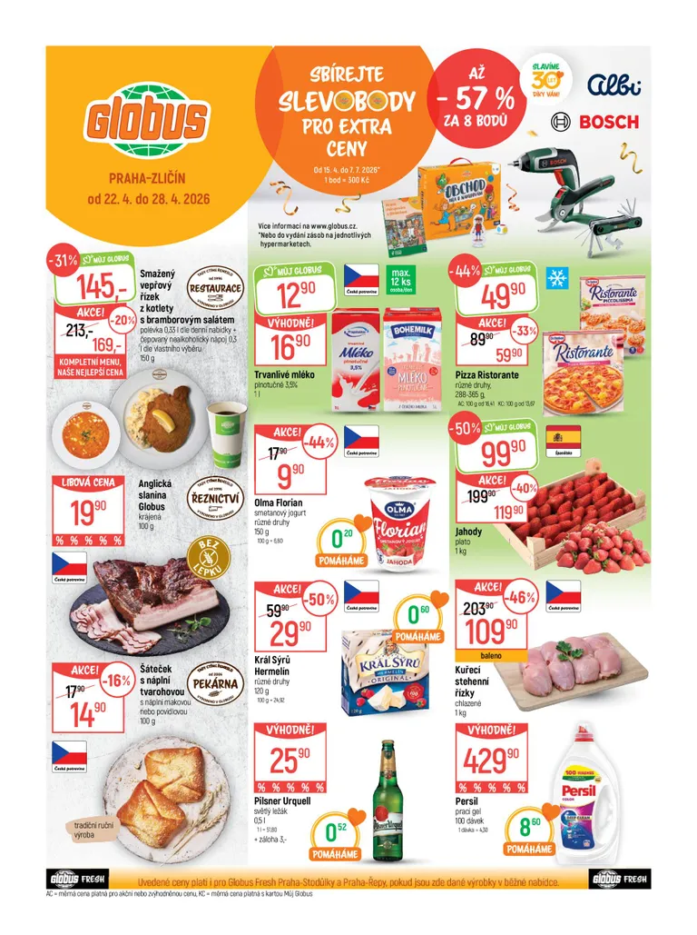 Právě se díváte na aktuální leták z obchodu Globus platný od 22.04.2026 do 28.04.2026. V letáku naleznete na 43 stránkách informace o aktuálních slevách. Navštěvujte pravidelně 111Letaky a získejte vždy aktuální informace o všech letácích z nabídek českých obchodů.