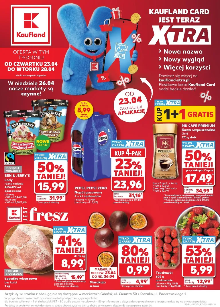 Právě se díváte na aktuální leták z obchodu Kaufland Polsko platný od 23.04.2026 do 28.04.2026. V letáku naleznete na 60 stránkách informace o aktuálních slevách. Navštěvujte pravidelně 111Letaky a získejte vždy aktuální informace o všech letácích z nabídek českých obchodů.