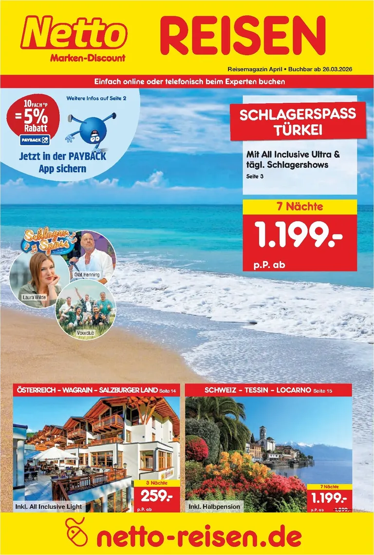 Právě se díváte na aktuální leták z obchodu Netto Německo platný od 26.03.2026 do 30.04.2026. V letáku naleznete na 24 stránkách informace o aktuálních slevách. Navštěvujte pravidelně 111Letaky a získejte vždy aktuální informace o všech letácích z nabídek českých obchodů.