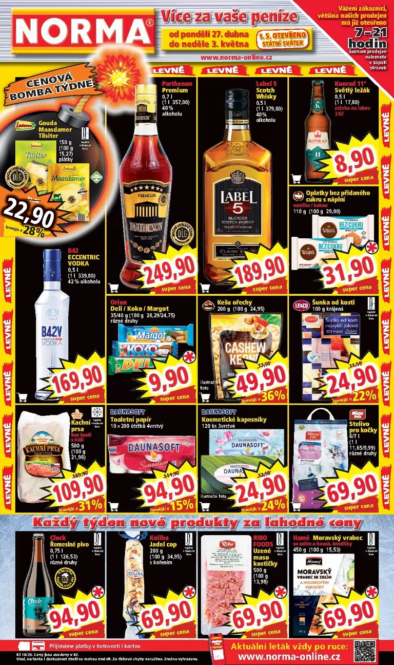 Právě se díváte na aktuální leták z obchodu Norma platný od 27.04.2026 do 03.05.2026. V letáku naleznete na 8 stránkách informace o aktuálních slevách. Navštěvujte pravidelně 111Letaky a získejte vždy aktuální informace o všech letácích z nabídek českých obchodů.