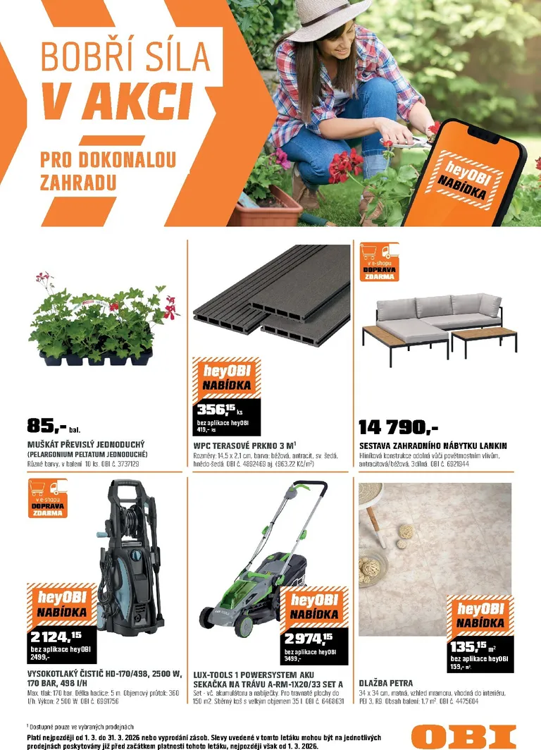 Právě se díváte na aktuální leták z obchodu OBI platný od 01.03.2026 do 31.03.2026. V letáku naleznete na 23 stránkách informace o aktuálních slevách. Navštěvujte pravidelně 111Letaky a získejte vždy aktuální informace o všech letácích z nabídek českých obchodů.