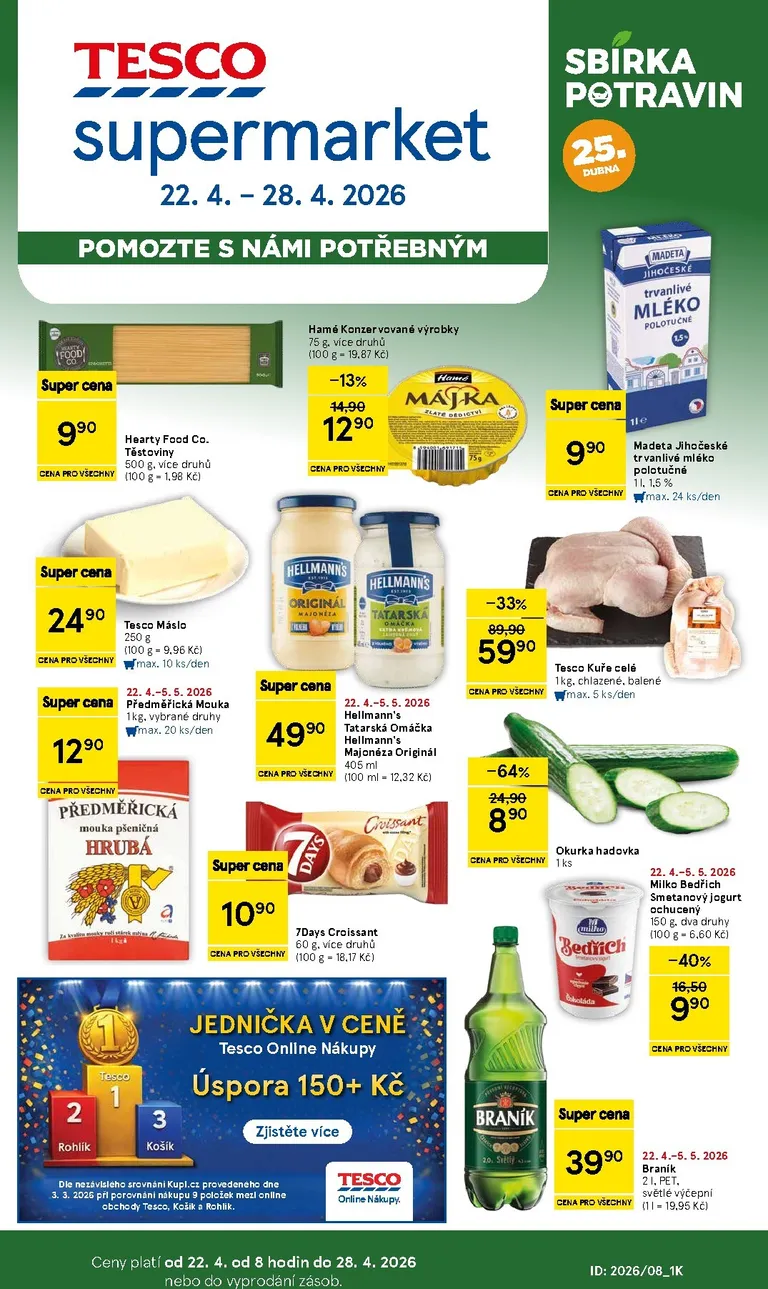 Právě se díváte na aktuální leták z obchodu Tesco platný od 22.04.2026 do 28.04.2026. V letáku naleznete na 10 stránkách informace o aktuálních slevách. Navštěvujte pravidelně 111Letaky a získejte vždy aktuální informace o všech letácích z nabídek českých obchodů.