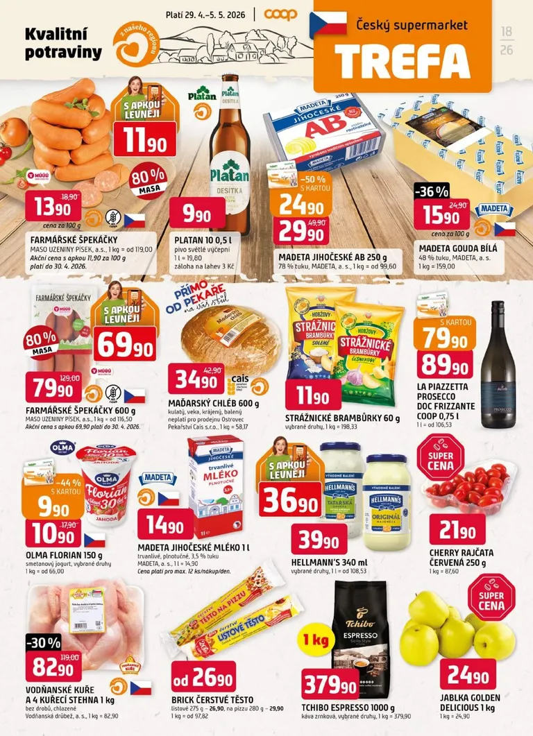Právě se díváte na aktuální leták z obchodu Trefa platný od 29.04.2026 do 05.05.2026. V letáku naleznete na 12 stránkách informace o aktuálních slevách. Navštěvujte pravidelně 111Letaky a získejte vždy aktuální informace o všech letácích z nabídek českých obchodů.